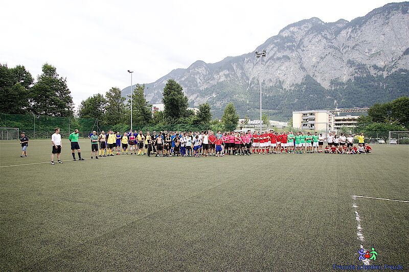 Schon morgens um neun ging es hoch her am Völser Fußballplatz: 18 Mannschaften fanden sich, mehr oder weniger munter, ein und fingen an sich aufzuwärmen…..die einen mit Kaffee und Wurstsemmel, die anderen schon etwas sportlicher am Rasen.